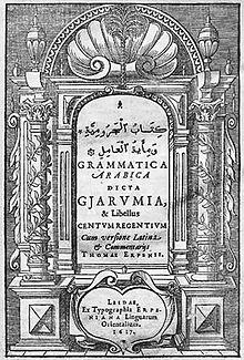 - ^ Steven W. Holloway, ed., Orientalism, Assyriology and the Bible, Hebrew Bible Monographs, 10; Sheffield Phoenix Press, 2006; ISBN 978-1-905048-37-3; p. 4. "At that time, the first Arabic grammar based on sound philological principles and written by a European, Thomas Erpenius (1584–1624), was published in 1613."