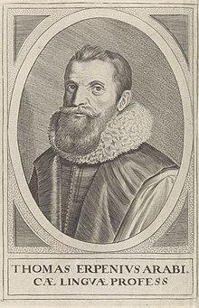 Thomas van Erpe [known as Thomas Erpenius] (September 11, 1584 – November 13, 1624), Dutch Orientalist, was born at Gorinchem, in Holland.[1] He was the first European to publish an accurate book of Arabic grammar.[2]