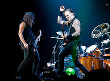 After the commercial and artistic climax for the genre, the energy of the thrash metal was exhausted and it was overtaken by the rising alternative metal and grunge movements.[26] In the 1990s many veteran thrash metal bands began changing to more accessible, radio-friendly styles.[27] Metallica was a notable example of this shift, particularly with their mid–to–late 1990s albums Load, and ReLoad, which displayed minor blues and southern rock influences, and were seen as a major departure from the band's earlier sound.[28] Megadeth took a more accessible heavy metal route starting with their 1992 album Countdown to Extinction,[29] and Testament released the melodic The Ritual in 1992.[30]