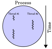 In computer science, a thread of execution is the smallest sequence of programmed instructions that can be managed independently by a scheduler, which is typically a part of the operating system.[1] The implementation of threads and processes differs between operating systems, but in most cases a thread is a component of a process. Multiple threads can exist within one process, executing concurrently and sharing resources such as memory, while different processes do not share these resources. In particular, the threads of a process share its executable code and the values of its dynamically allocated variables and non-thread-local global variables at any given time.