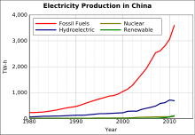 The dam was expected to provide 10% of China's power. However, electricity demand has increased more quickly than previously projected. Even fully operational, on average, it supports only about 1.7% of electricity demand in China in the year of 2011, when the Chinese electricity demand reached 4692.8 TWh.[58][59]