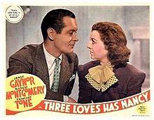 Three Loves Has Nancy is a 1938 romantic comedy film directed by Richard Thorpe and starring Janet Gaynor, Robert Montgomery and Franchot Tone. It is set in New York City.