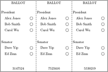 - ^ a b c Ronald L. Rivest (2006). "The ThreeBallot Voting System" (PDF). Retrieved 2007-01-16.
