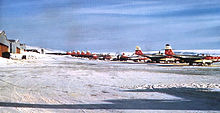 In 1959, the airbase was the main staging point for the construction of Camp Century, some 150 mi (240 km) from the base.[7] Carved into the ice, and powered by a nuclear reactor, PM-2A Camp Century was officially a scientific research base, but in reality was the site of the top secret Project Iceworm. The camp operated from 1959 until 1967.