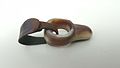 Thumb rings have been in use in Asia since the Neolithic period. The first examples were likely made of leather, but artifacts made entirely of leather do not last thousands of years. Surviving artifact rings are made of bone, horn, or stone; presumably most would have incorporated a leather guard. Comparison with historical and modern rings shows little functional change over the millennia.[1] In the cemetery of the small Rui state at Liangdaicun near Hancheng on the Yellow River (where it flows south between the provinces of Shaanxi and Shanxi), a Lord of Rui was interred in a tomb, M 27, dated to the eighth century BCE. His grave goods included two thumb rings, made of gold but of an entirely modern pattern.[2]
