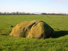 The Thurgartstone or Ogrestone[1] is a prominent glacial erratic stone near Dunlop in East Ayrshire, Scotland. The Thurgartstone stands in a field at Brandleside Farm[1] and is thought to have been a rocking stone at one time, but it no longer moves due to a build up of soil beneath.[1]