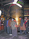 Pilgrim with prayer wheel, Tsurphu Monastery, 1993