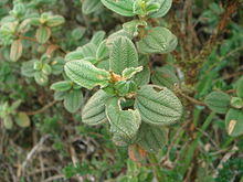 Tibouchina aspera Aubl. is a subshrub with densely scaly indumentum on the stem, petiole, calyces and hypanthium.[23][24] T. aspera was described in 1775 and is the type species of the genus Tibouchina.[25] There are currently three synonyms for this species: Rhexia aspera (Aubl.) Willd., Tibouchina belizensis Lundell, and Tibouchina spruceana Cogn.[25] There are also two currently described varieties: T. aspera var. asperrima Cogn. and T. aspera var. aspera.[25] This species was described in 1775 based on a specimen from French Guiana which is currently kept in the herbarium at the Natural History Museum in London.[25] It was found growing in dry, arid and sandy soil close to an abandoned home.[25] In the original description of this species, it was suggested that this plant was inhaled to treat chest pain and dry coughs.[17] Now, this species is known to be widely distributed in Central and South America, including in Belize, Bolivia, Colombia, French Guiana, Guyana, Honduras, Nicaragua, Panama, Peru, Suriname, Venezuela, and in the Brazilian states of Amapá, Roraima, Amazonas, Pará, Acre, Rondônia, Maranháo, and Mato Grosso.[25][23] It is commonly found in the cerrado, campinas and restingas in humid, sandy soil.[23] In a study of the Melastomataceae of the Brazilian restingas in Pará, T. aspera was found in the herbaceous marsh, fields between dunes and open shrubby fields[23] (Lima et al., 2014).