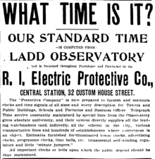 Telegraph signals were used regularly for time coordination by the United States Naval Observatory starting in 1865.[10] By the late 1800s, many U.S. observatories were selling accurate time by offering a regional time signal service.[11]