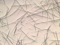 Tin(IV) oxide has long been used as an opacifier and as a white colorant in ceramic glazes.[16] This has probably led to the discovery of the pigment lead-tin-yellow, which was produced using tin(IV) oxide as a compound.[17] The use of tin(IV) oxide has been particularly common in glazes for earthenware, sanitaryware and wall tiles; see the articles tin-glazing and Tin-glazed pottery. Tin oxide remains in suspension in vitreous matrix of the fired glazes, and, with its high refractive index being sufficiently different from the matrix, light is scattered, and hence increases the opacity of the glaze. The degree of dissolution increases with the firing temperature, and hence the extent of opacity diminishes.[18] Although dependent on the other constituents the solubility of tin oxide in glaze melts is generally low. Its solubility is increased by Na2O, K2O and B2O3, and reduced by CaO, BaO, ZnO, Al2O3, and to a limited extent PbO.[19]