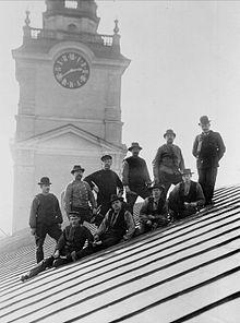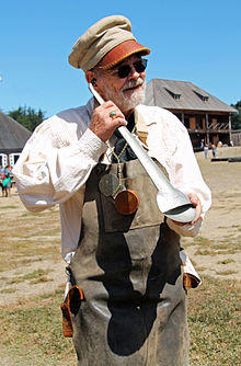 A tinsmith is a person who makes and repairs things made of tin or other light metals. The profession may sometimes also be known as a tinner, tinker, tinman, or tinplate worker; whitesmith may also refer to this profession,[1] though the same word may also refer to an unrelated specialty of iron-smithing. By extension it can also refer to the person who deals in tinware, or tin plate.[2] Tinsmith was a common occupation in pre-industrial times.