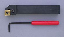 A tipped tool is any cutting tool in which the cutting edge consists of a separate piece of material that is brazed, welded, or clamped onto a body made of another material. In the types in which the cutter portion is an indexable part clamped by a screw, the cutters are called inserts (because they are inserted into the tool body). Tipped tools allow each part of the tool, the shank and the cutter(s), to be made of the material with the best properties for its job. Common materials for the cutters (brazed tips or clamped inserts) include cemented carbide, polycrystalline diamond, and cubic boron nitride.[1] Tools that are commonly tipped include milling cutters (such as end mills, face mills, and fly cutters), tool bits, router bits, and saw blades (especially the metal-cutting ones).