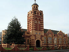 Until 1966, the town had its own council. The urban district council of Tipton was formed in 1894, then received County Borough status in 1938.[6] The headquarters were originally based in a 19th-century building on Owen Street until 1935 when it relocated to the former Bean offices site on Sedgley Road West, straddling the border with Coseley. The council remained at that site for the next 31 years, until the dissolution of the borough council in April 1966. The building was later taken over by Dudley College, who retained it until 1993. It has since been occupied by businesses and training scheme providers.