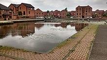 Bean Cars, a company that manufactured cars and lorry engines and other vehicle parts, had a factory in Tipton[8] Further industrial sites have been abandoned since the 1970s, paving the way for mass private house building on the land.[9] The town's naphtha gas plant opened in 1965 but closed just 10 years later, unable to compete with natural gas from the North Sea. The gasworks stood abandoned for about a decade afterwards, when it was finally demolished. Standeridge Park housing estate was built on its site during the 1990s. By the late 2000s, most of the town's large factories had closed.[5]