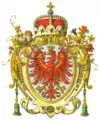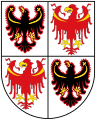 Although the details of the arms of Tyrol have changed over the centuries, one feature has remained more-or-less constant: argent, an eagle displayed gules, armed (and sometimes crowned) or.[8] Since 1983, the Province of South Tyrol has its own coat of arms. It is very similar to the coat of arms of the State of Tyrol. The Province wanted to emphasize the historical commonality of the countries.[9] The Province of Trento received its coat of arms in 1340 and refers to the prince-bishopric of Trento. The former County of Tyrol had a uniform coat of arms, which was slightly changed over the centuries.