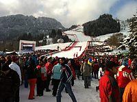 In Tyrol, the Olympic Winter Games have been organized three times so far. In 1964 and 1976 they were held in Innsbruck and 1956 in Cortina. Most of the big annual sporting events in Tyrol take place in winter. The Alpine Skiing World Cup is held in Kitzbühel, Val Gardena, Cortina and Madonna di Campiglio. These races are classics in the Ski World Cup and have a long tradition. A famous biathlon location is in Antholz. There were often held the Biathlon World Championships. Several Nordic Combined World Championships were organized in Val di Fiemme. Part of the Four Hills Tournament is the Bergisel Ski Jump in Innsbruck. A stage of the Tour de Ski is also located in Toblach.