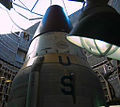 ![]() An ICBM loaded into the silo of the Titan Missile Museum, with a hole cut into the side of the nose cone to show that the weapon is inert. | |