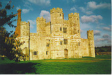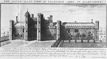 Unlike his similar project at Beaulieu Abbey, which he had also been granted by King Henry, Wriothesley chose to convert the main abbey buildings, including the church, into his house. It was an imaginative scheme, built under the direction of master mason Thomas Bartewe, a prominent contractor for King Henry's contemporary fortification works along the South Coast.[15] He constructed a spectacular castellated gatehouse with four octagonal turrets which was forced through the middle of the nave to provide the appropriate seigneurial emphasis needed for a classic Tudor courtyard house.[17] The cloister became the central courtyard of the house (a magnificent fountain was placed in the middle), the old refectory, with the addition of a grand porch, became the great hall, while the rest of the abbey was turned into fine apartments for the family. The church tower was initially kept as part of the house but it was soon demolished on the advice of John Crayford, one of the king's commissioners who helped to oversee the reconstruction on behalf of Wriothesley. Crayford was anxious to see the tower pulled down as, if it was left standing, the chimneys would have to be raised some twenty feet higher - and at great cost - to avoid defacing the church tower with their smoke.[16] Other features of the mansion included a private indoor theatre and a deer park.[6][18]