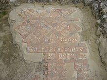 Substantial stretches of the late mediaeval tile floors survive to this day. An inscription which used to lie before the entrance to the canons' refectory, was later covered and preserved beneath the steps leading up to Wriothesley's banqueting hall. Two other patches of tiling survive to the north of the gatehouse. Following the expulsion of the canons, these were concealed beneath the spiral staircases installed in Wriothesley's reconstruction, and therefore escaped being torn out with the rest of the tiles along the cloister walk.[22] In winter, the tiles are covered over with sand by English Heritage staff in order to protect them from damage in the cold weather.