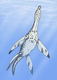 | Toarcian | Württemberg, Germany | A large (about 3 to 5 meters long), microcleidid, it was distinguished by its small head, long and slender neck, broad turtle like body, a short tail, and two pairs of large, elongated paddles | |