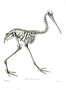 Apteryx australis is based on Greek and Latin. Apteryx means "A-" without "pterux" wings, and "australis" from "auster" the south wind, and "-alis" relating to.[6] The southern brown kiwi belongs to the kiwi family and it is a ratite, and a member of the order Struthioniformes. Like all ratites, its sternum has no keel, it is flightless, and it has a distinctive palate.[3]
