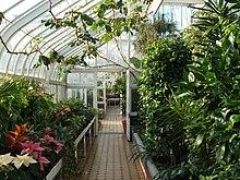 The Tollcross conservatories were originally erected in 1870 at Redholm in Ardrossan, North Ayrshire. Baillie A.G. MacDonald of Redholm gifted them to the Glasgow Corporation in 1898 as a gesture to commemorate his inks with the area. They were careful dismantled and re-erected at their present-day site.[18] The Tollcross cast-iron Victorian conservatory (NS 63659 63721),[19] is a B-Listed structure, known as the 'Winter Gardens'. It is Latin-cross shaped in layout, has two semicircular ends and is crowned with a dome. The scrolled cast iron buttresses are a notable feature.[20]