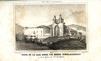 If Zumalacárregui had been allowed to follow his own plans, which were to concentrate his forces and march on Madrid, firstly seizing Logroño (La Rioja, Castile), he might well have put Don Carlos in possession of the capital. But the court was eager to obtain command of a seaport, because they thought this will facilitate the official recognition of Don Carlos as the legitimate heir to the Spanish Throne by other European courts. Thus, Zumalacárregui was ordered to besiege Bilbao. He obeyed reluctantly, and on 14 June 1835 was wounded in the calf by a musket shot, near the Basilica of Begoña.[2] The wound was trifling and would probably have been cured with ease, but Zumalacárregui decided to employ a famous Gipuzkoan quack called "Petriquillo", whom he trusted.[3] Petriquillo proceeded to remove the bullet from Zumalacárregui's leg, provoking a great loss of blood and probably an infection. Don Carlos had insisted on sending his own physicians, but they hesitated about the best prognosis to follow, losing precious time and failing to stop Petriquillo from trying his "procedure" (he acted when they were not present) and in their hands the general died on 24 June 1835, not without suspicion of poison and after Petriquillo had hastily left the scene.