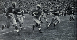 In the season's fourth game, as Michigan defeated Illinois, 28-0, Harmon increased his point total to 80 as he ran for a touchdown and kicked a field goal and an extra point.[42]
