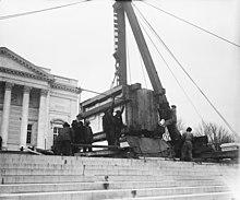 - ^ 1931 body block tonnage calculated in 2004 is different (by 5.9%) from the other source amount of 56 tons and can not be explained with certainty. Sub-base cubic footage and tons was calculated from the source dimensions because cubic feet and tons were not included in the source data table. Per cubic foot, the marble weighs 170 pounds.