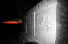 - ^ Many sources reference the 1931 Tomb as a sarcophagus, but it is not: in a sarcophagus, the remains are placed in a hollowed-out portion of the stone; the marble in the Tomb was not hollowed out and the remains are underneath the Tomb.