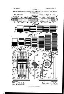 - ^ US patent 580035, Thaddeus Cahill, "Art of and apparatus for generating and distributing music electrically", issued 1897-04-06, filed 1896-02-04.