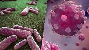 Viral infections cause 40 to 60% of cases of tonsillitis.[11] Many viruses can cause inflammation of the tonsils (and the rest of throat) including adenovirus, rhinovirus, coronavirus, influenza virus, parainfluenza virus, coxsackievirus, measles virus, Epstein-Barr virus, cytomegalovirus, respiratory syncytial virus, and herpes simplex virus.[14] Tonsillitis can also be part of the initial reaction to HIV infection.[14] An estimated 1 to 10% of the cases are caused by Epstein-Barr virus.[12]