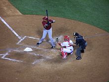 Clark slumped badly thereafter, however, as in his next 18 at-bats he only managed to eke out a single. As of May 6 he was batting .179, and had struck out in more than half his at bats.[13] That day Clark was placed on the 15-day disabled list for a lingering wrist ligament injury, and Whitesell, who was hitting .356 for the Reno Aces with a .477 on-base percentage, was called up to the Diamondbacks to take his place.[14][15][16] Clark suffered the injury during spring training, and re-aggravated it in late April, leaving him unable to swing comfortably from the left side. It was anticipated that the injury could require more than 15 days to heal.[17] On June 19 Clark came off the disabled list and returned to Arizona (after a rehab assignment at Reno in which he batted .160, and during which he turned 37), and Whitesell was optioned back to Reno (after batting .300 with a .447 on-base percentage in his second stint with the team).[18][19] In his first game back with the team, Clark went 0–3 with 2 strikeouts to bring his batting average down to .161, with strikeouts in 55% of his at bats for the season.