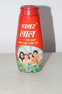 The use of powdered substances such as charcoal, brick, and salt for cleaning teeth has been historically widespread in India, particularly in rural areas.[8] Modern tooth powder has been positioned as a cost-effective substitute for toothpaste, as it can be applied with the index finger without requiring use of a toothbrush.[8]