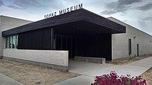 In 1982, Delta High School teacher Jane Beckwith and her journalism students began to study Topaz. She spearheaded the creation of the Topaz Museum Board in 1983, which oversaw the Topaz Museum, which initially shared space with the Great Basin Museum. Funding from the Japanese-American Confinement Sites organization enabled the Topaz Board to construct its own museum building in 2013.[33] In 2015, the museum formally opened with an exhibition of art created at Topaz, entitled "When Words Weren't Enough: Works on Paper from Topaz, 1942-1945."[26] The museum closed for remodeling in November 2016, and reopened in 2017 as a traditional museum focused on the history of Topaz. By 2017, the Topaz Museum and Board had purchased 634 of the 640 acres of the original internment site.[33]