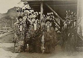 Hudoq Dance Performance in Upper Mahakam River, Borneo, Dutch East Indies circa 1896.