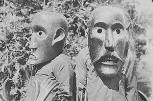 Topeng (Indonesian for "mask") is a dramatic form of Indonesian dance in which one or more mask-wearing, ornately costumed performers interpret traditional narratives concerning fabled kings, heroes and myths, accompanied by gamelan or other traditional music instruments.[1]