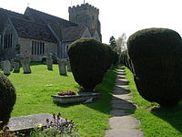 St Peter's Church in Henfield the path to Church is guarded by topiary