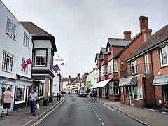 Topsham (/ˈtɒpʃəm/, also /ˈtɒpsəm/) is a town in Devon, England, in the district of Exeter, on the east side of the River Exe, immediately north of its confluence with the River Clyst and the former's estuary, between Exeter and Exmouth. Although village-sized, with a current population of around 5,023, increasing to 5,519 at the 2011 census for the electoral ward population which includes Countess Wear, which is its own individual settlement,[2] Topsham was designated a town by a 1300 royal charter, until the Exeter urban district was formed. It is served by Topsham railway station on the branch line to Exmouth. In 2011 was the 150th anniversary of the railway coming to Topsham, on what is now called the Exeter–Exmouth Avocet Line.[3]