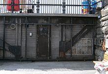 The team's headquarters during the first two series, referred to as the Hub, was beneath Roald Dahl Plass in Cardiff Bay – formerly known as the Oval Basin. This is where the TARDIS landed in the Doctor Who episodes "Boom Town" and "Utopia" to refuel, and is the location of the spacetime rift first seen in "The Unquiet Dead". The Hub itself was around three storeys high, with a large column running through the middle that was an extension of the fountain above; at its base lay the rift machine. The Hub had two means of access: a lift that rose to the plass next to the fountain (camouflaged by a perception filter), and a more mundane entrance hidden in a tourism office. Production crew were keen to use everything Wales had to offer in filming the series; for example, the military base scenes in "Sleeper" and the booby-trapped abandoned warehouse scenes in "Fragments" were filmed at RAF Caerwent, near Chepstow.[84]