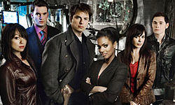Torchwood is a British science fiction television programme created by Russell T Davies, a spin-off from the 2005 revival of Doctor Who, which aired four series between 2006 and 2011. The show shifted its broadcast channel each series to reflect its growing audience, moving from BBC Three to BBC Two to BBC One, and acquiring US financing in its fourth series when it became a co-production of BBC One and Starz. Torchwood is aimed at adults and older teenagers, in contrast to Doctor Who's target audience of both adults and children. As well as science fiction, the show explores a number of themes, including existentialism, sexuality and human corruptibility.