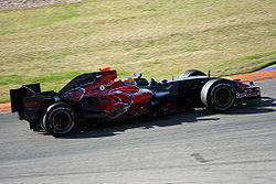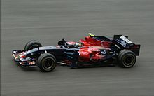The Toro Rosso STR2 is the car with which the Scuderia Toro Rosso team competed in the 2007 Formula One season. It was unveiled on 13 February 2007 at the Circuit de Catalunya.[1] The car is, controversially, a variant of the Red Bull RB3 chassis (although powered by a Ferrari instead of a Renault engine). It was initially driven by Vitantonio Liuzzi and Scott Speed, until Speed was replaced by Sebastian Vettel at the Hungaroring for the remainder of the season. The car in a modified form was also used to compete in the first four races of the 2008 Formula One season. The modified car was driven by Sébastien Bourdais, four-consecutive-time Champ Car winner, and Vettel. The STR2 was the first-ever Toro Rosso F1 car to use the mandatory 90-degree Formula One V8 engine configuration but Toro Rosso opted for the 2006-spec Ferrari 056 instead of the 2007-spec because of 1-year old Toro Rosso engine policy and as a cost-saving measure.