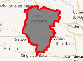 Torre de' Picenardi borders the following municipalities: Ca' d'Andrea, Cappella de' Picenardi, Drizzona, Isola Dovarese, Pessina Cremonese, and Voltido.