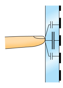 When a user touches the surface, the system records the change in the electric current that flows through the display.