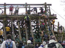 The Tough Guy Competition is an endurance challenge that claims to be the world's most demanding one-day survival ordeal. First staged in 1987 and organised by Billy Wilson under the pseudonym of "Mr. Mouse", it is held on a 600-acre (2.42 square km) farm in the English village of Perton, Staffordshire.[1] It has been described as "the toughest race in the world",[2] with up to one-third of the starters failing to finish in a typical year. After 27 stagings of the winter event, Wilson still claimed nobody had ever finished the course according to his extremely demanding rules.