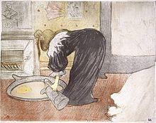 From 1889 until 1894, Toulouse-Lautrec took part in the Salon des Indépendants regularly. He made several landscapes of Montmartre.[7] Tucked deep into Montmartre in the garden of Monsieur Pere Foret, Toulouse-Lautrec executed a series of pleasant en plein air paintings of Carmen Gaudin, the same red-headed model who appears in The Laundress (1888).