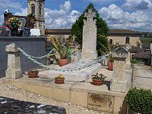 On 9 September 1901, at the age of 36, he died from complications due to alcoholism and syphilis at his mother's estate, Château Malromé, in Saint-André-du-Bois. He is buried in Cimetière de Verdelais, Gironde, a few kilometers from the estate.[40][41] His last words reportedly were "Le vieux con!" ("the old fool"), his goodbye to his father,[26] though another version has been suggested, in which he used the word "hallali," a term used by huntsmen at the moment the hounds kill their prey: "Je savais, Papa, que vous ne manqueriez pas l'hallali" ("I knew, papa, that you wouldn't miss the death.").[42]