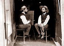 While in London, he met and befriended Oscar Wilde.[26] When Wilde faced imprisonment in Britain, Toulouse-Lautrec became a very vocal supporter of him, and his portrait of Oscar Wilde was painted the same year as Wilde's trial.[26][32]