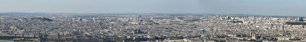 The view covers a radius of 40 km (25 mi); aircraft can be seen taking off from Orly Airport.