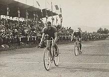 Such was the passion that the first Tour created in spectators and riders that Desgrange said the 1904 Tour de France would be the last. Cheating was rife and riders were beaten up by rival fans as they neared the top of the col de la République, sometimes called the col du Grand Bois, outside St-Étienne.[34] The leading riders, including the winner Maurice Garin, were disqualified, though it took the Union Vélocipèdique de France until 30 November to make the decision.[35] McGann says the UVF waited so long "...well aware of the passions aroused by the race."[36] Desgrange's opinion of the fighting and cheating showed in the headline of his reaction in L'Auto: THE END.[37] Desgrange's despair did not last. By the following spring he was planning another Tour, longer at 11 stages rather than 6 – and this time all in daylight to make any cheating more obvious.[38] Stages in 1905 began between 3 am and 7:30 am.[39] The race captured the imagination. L'Auto's circulation rose from 25,000 to 65,000;[17] by 1908 it was a quarter of a million. The Tour returned after its suspension during World War I and continued to grow, with circulation of L'Auto reaching 500,000 by 1923. The record claimed by Desgrange was 854,000 during the 1933 Tour.[40] Le Vélo, meanwhile, went out of business in 1904.